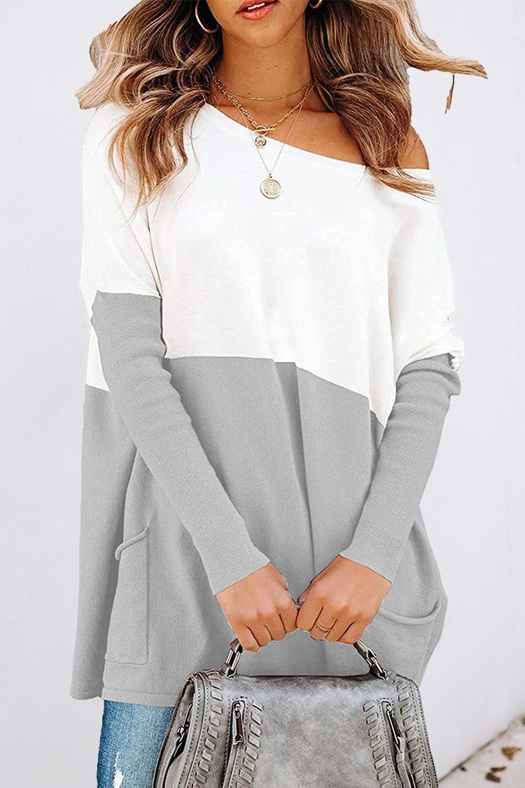 Goleathervest Women’s Loose Knit Sweater One Shoulder Knit Pullover Color Block Pullover