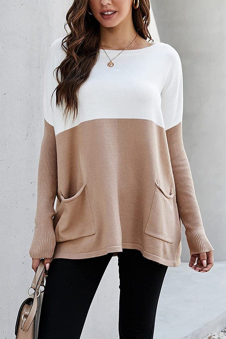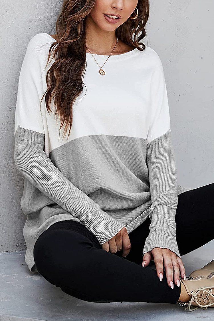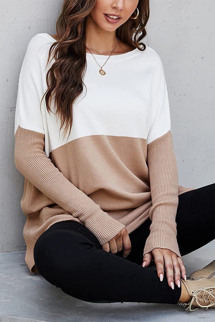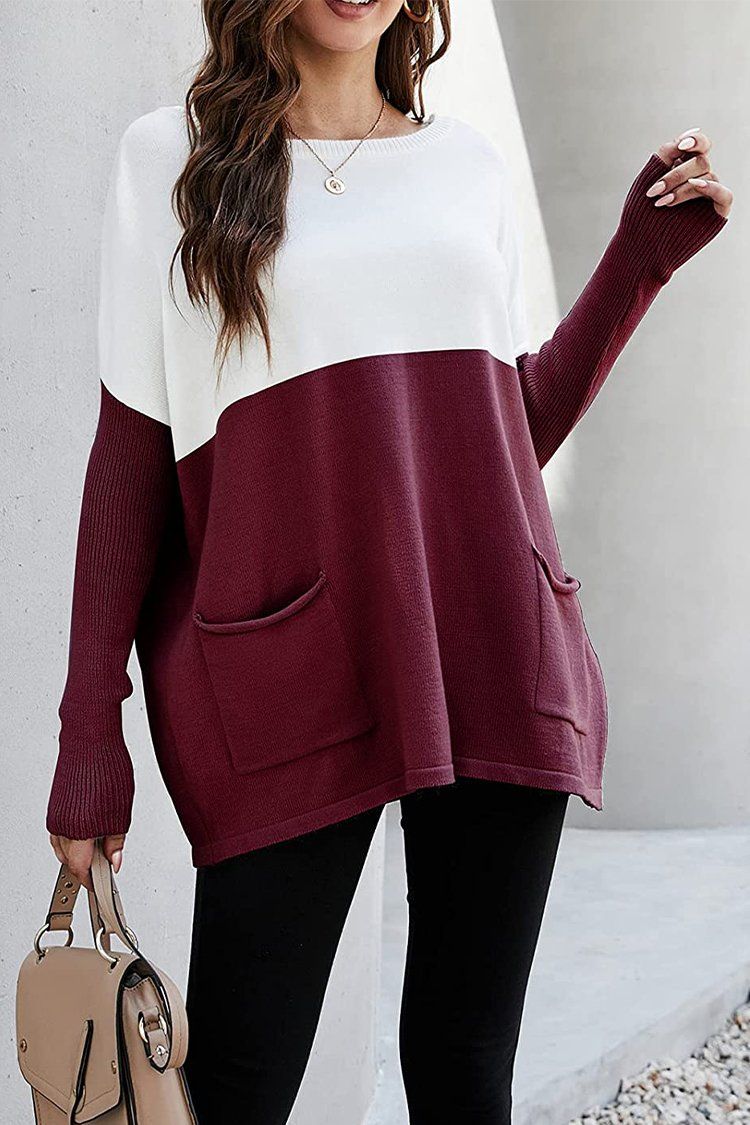 Cropped Color Block Pullover Knit Pullover Oversized Sweater