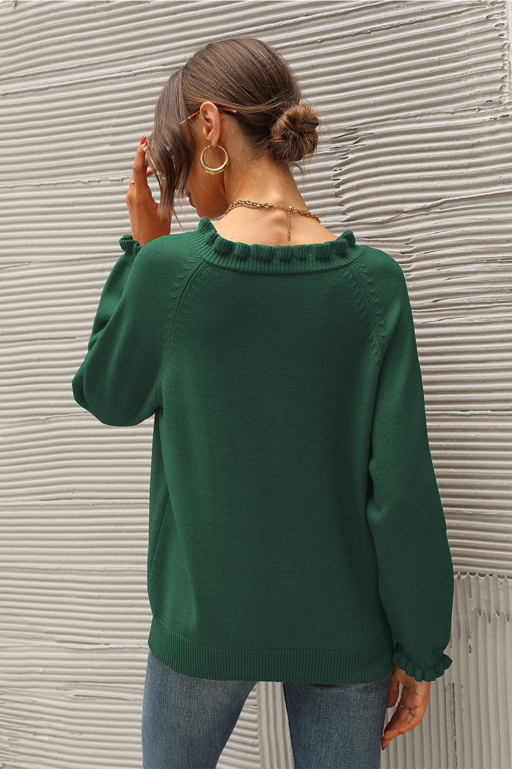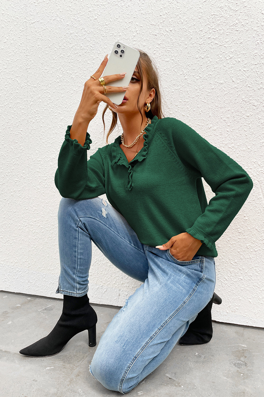Long Sleeve Button Down Ruffle Knit Pullover Sweater Tops