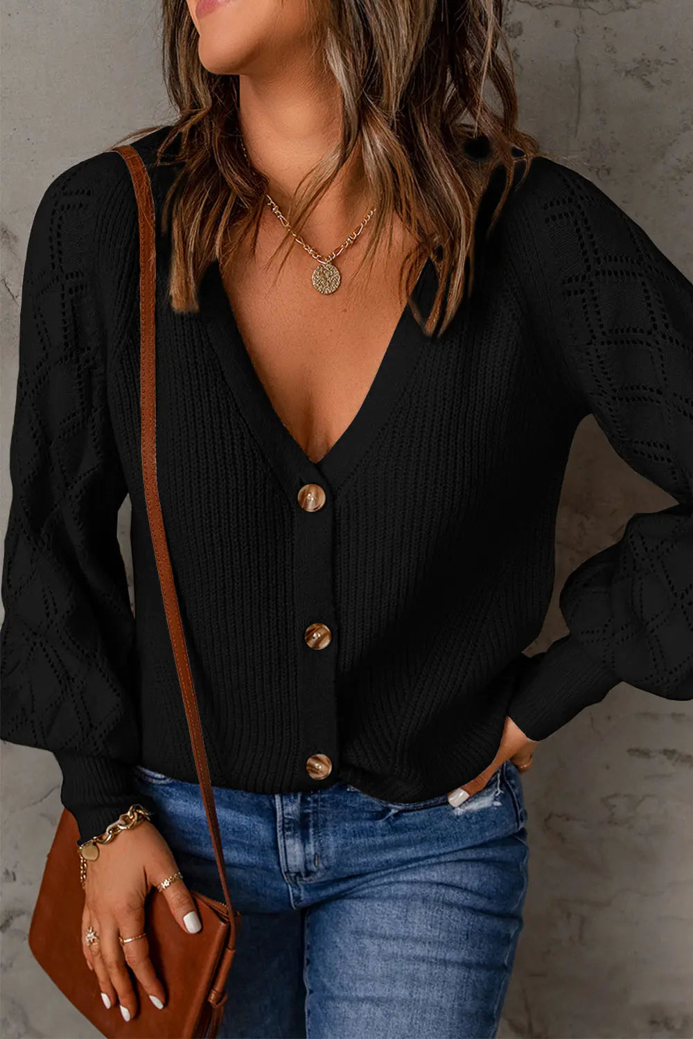 / V Neck Long Sleeve Button Down Ribbed Sweatshirts Cardigan