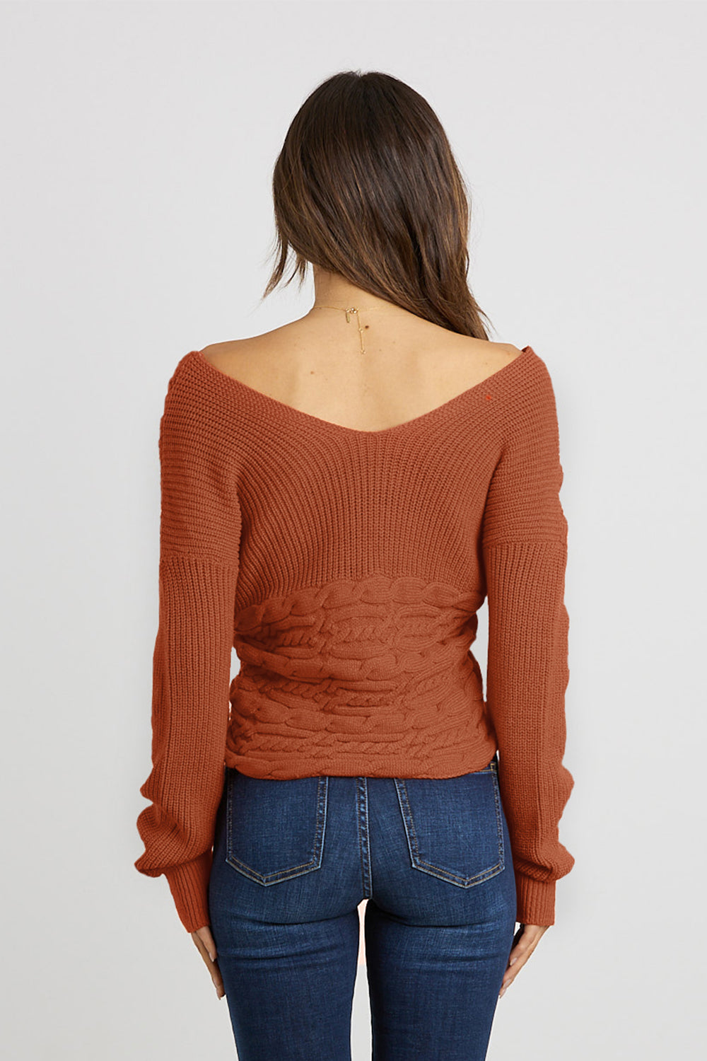 Wrap Front Off Shoulder Asymmetric Pullover Sweater quantity
